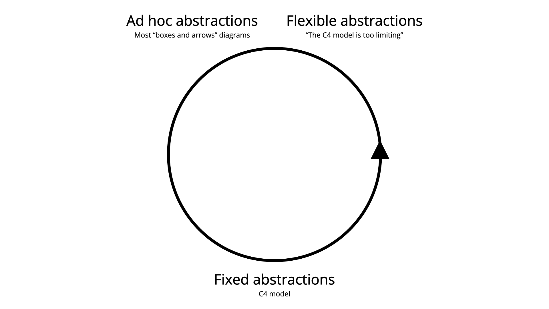 Эта цитата из [записи в блоге] (https://www.ilograph.com/blog/posts/concrete-diagramming-models/) поднимает пару интересных вопросов о модели C4: