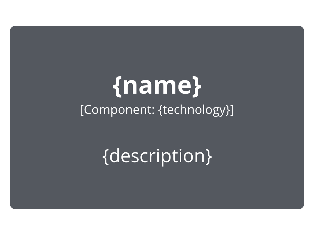 - Каждый элемент должен иметь краткое описание, чтобы обеспечить “беглым взглядом” представление о ключевых обязанностях.