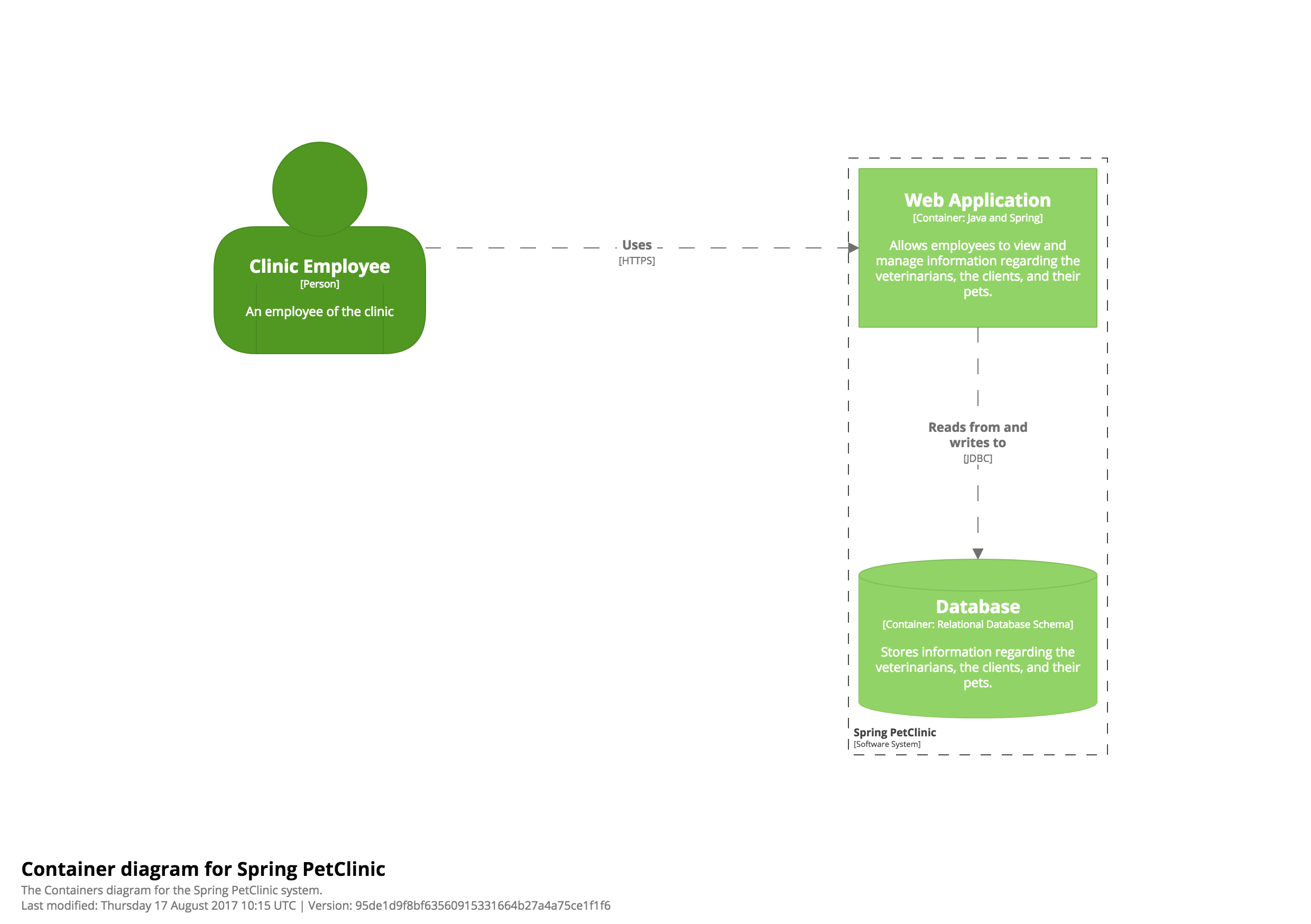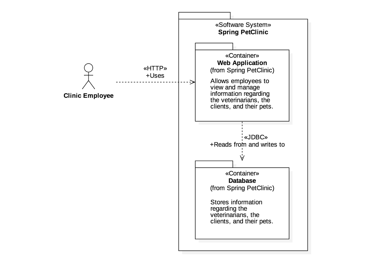 Обратите внимание, что в каждом поле указан тип элемента/абстракции (“Человек”, “Программная система”, “Контейнер”, “Компонент”) - это целенаправленное решение, которое помогает устранить любую двусмысленность в отношении того, какой уровень абстракции отображается.