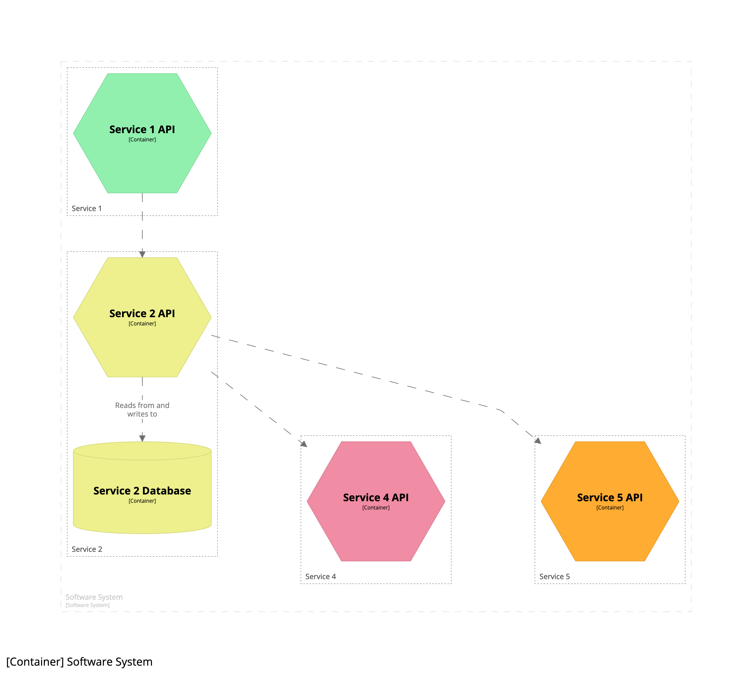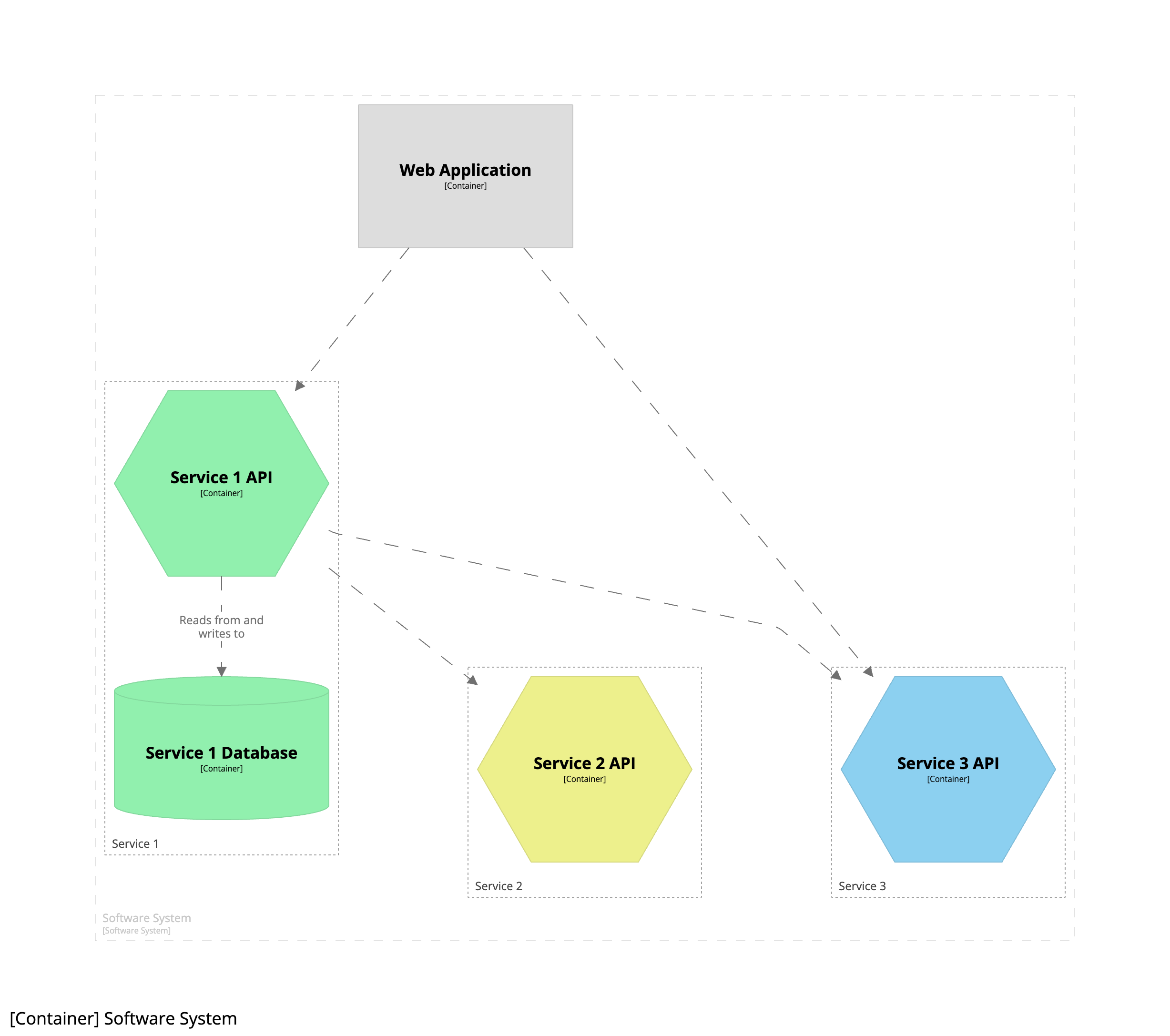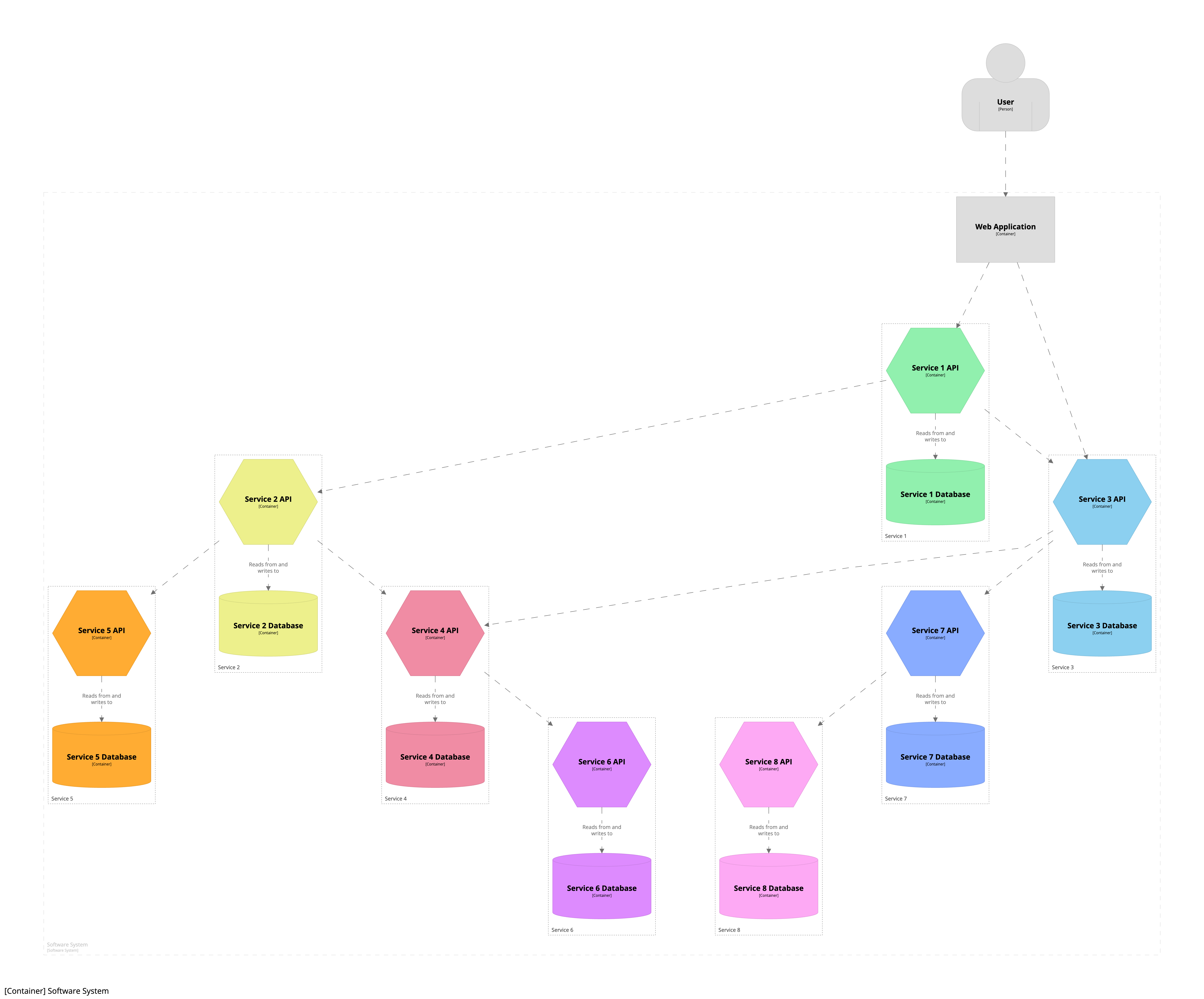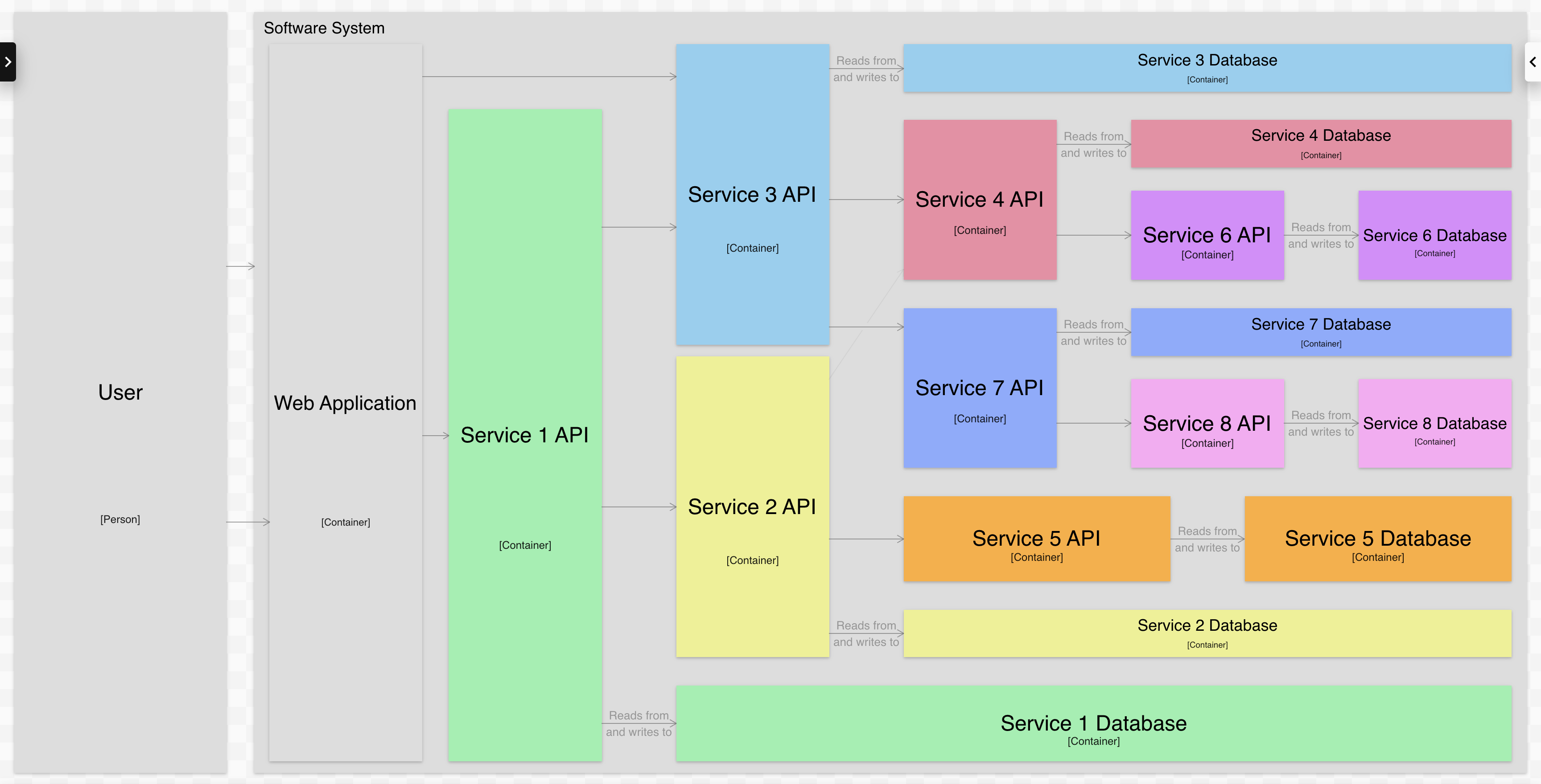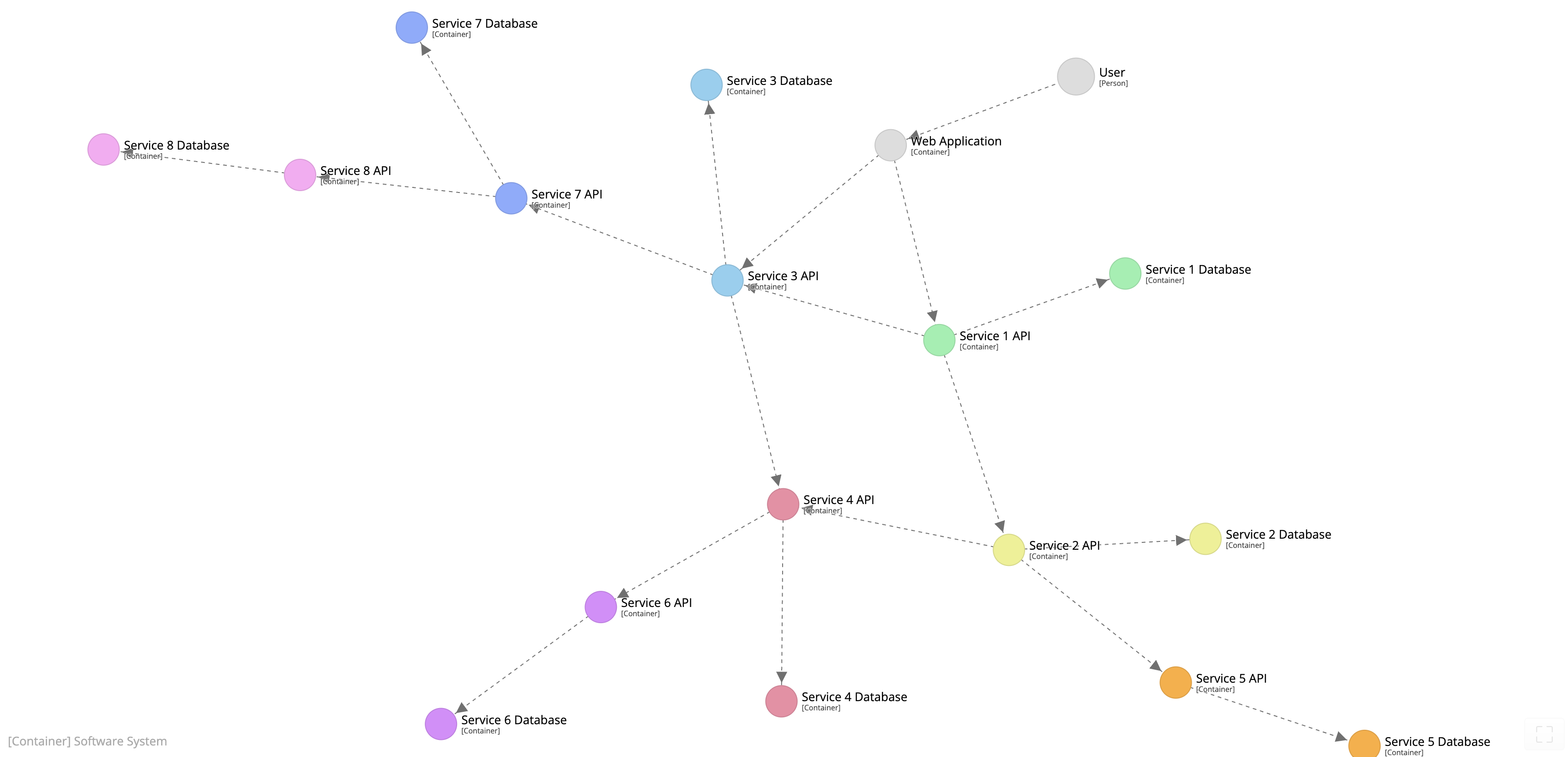 Вот пример схемы контейнера, показывающей программную систему, состоящую из нескольких микросервисов:
